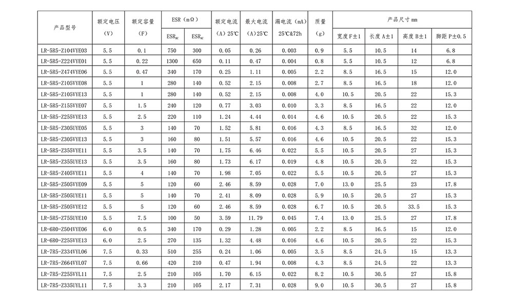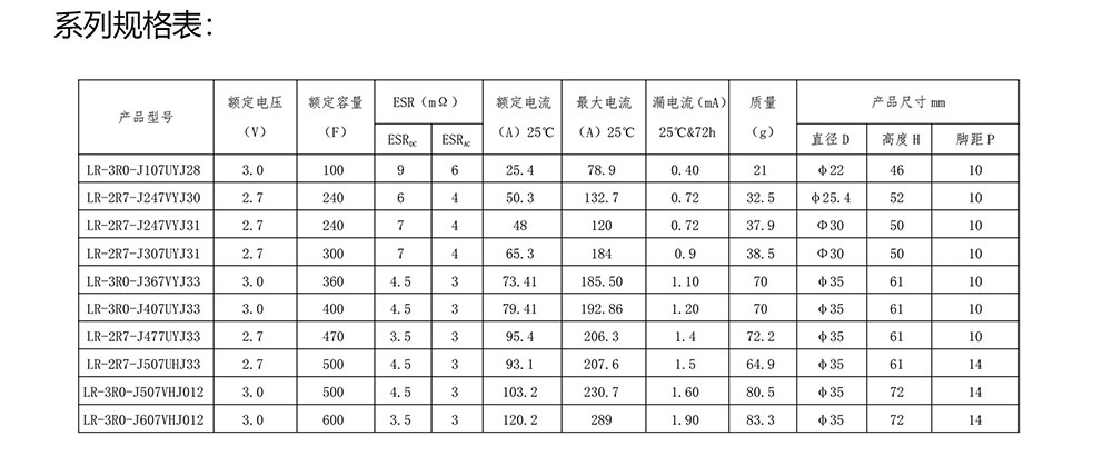 超級電容器 LR系列